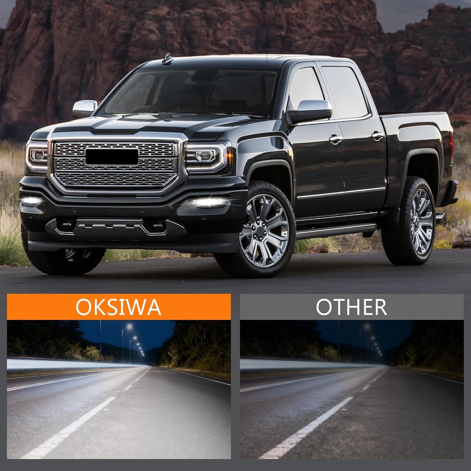OKSIWA LED Fog Lights-For 2016 2017 2018 GMC Sierra 1500, Fog Light Assembly Replacement, IP67 Waterproof, Clear Lens,Exclude Fog Wiring Harness