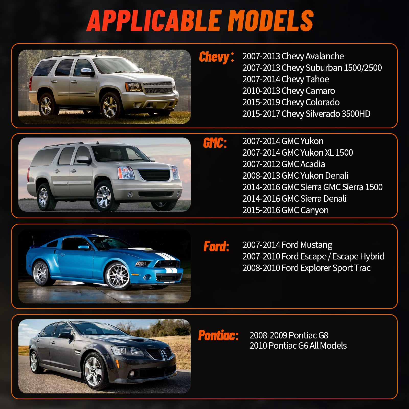 - Fitment: Perfectly Compatible with Chevy Avalanche/Suburban 1500 2007-2013/Tahoe 2007-2013, Compatible with GMC Acadia 2007-2012,Sierra 1500 2014/2500HD 2015/3500 HD 2015,Yukon/Yukon XL 2007-2013, Compatible with Ford Mustang 2008-2009 Pontiac G8, molded by original car