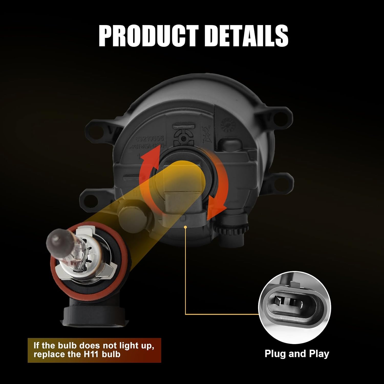 - Easy To Install:Just plug and play, usually takes about 15 minutes or less.complete set fog Lights are designed to simply plug into your existing wiring without any cutting or drilling,If the light does not come on, try rotating it 180 degrees and reconnecting it.