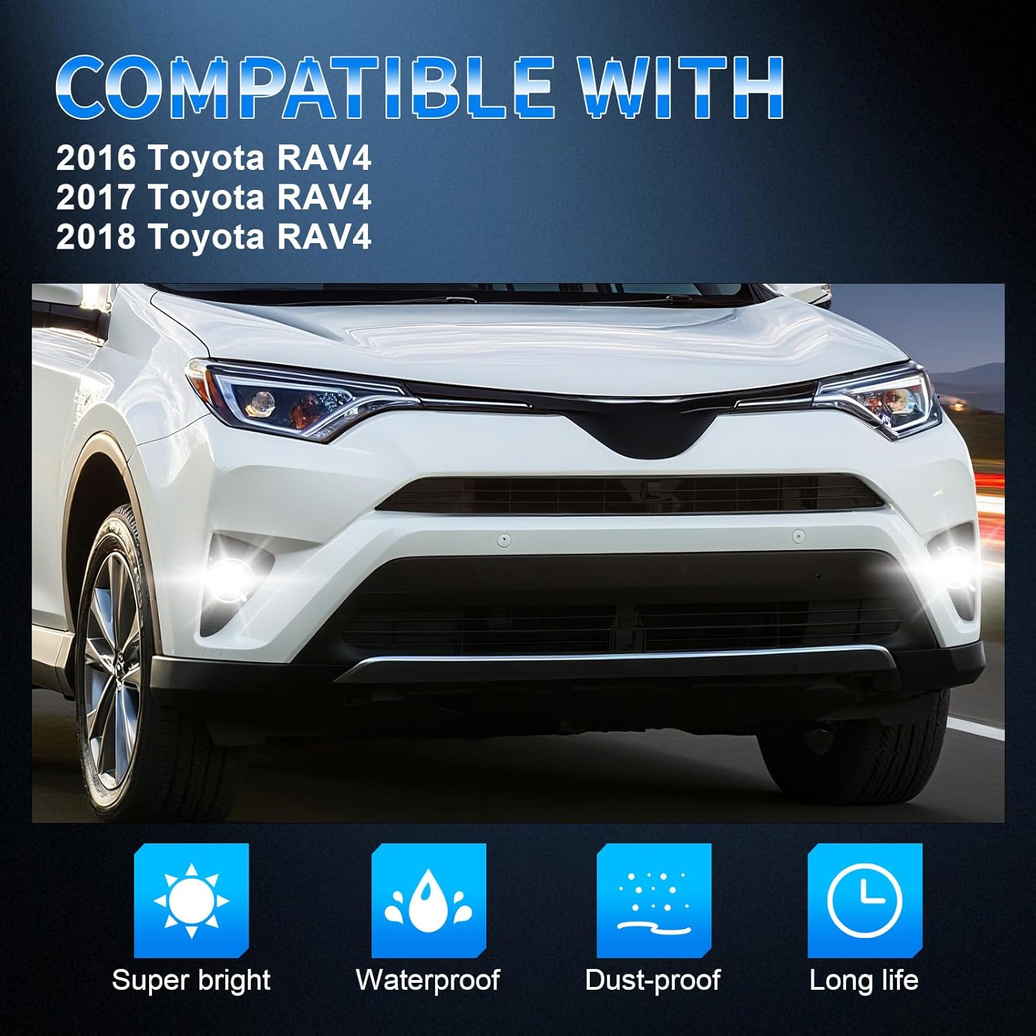 - Vehicle Fitment: LED Fog Lights for 2016 2017 2018 Toyota RAV4.Replacement OE#: 520300R020 and 520400R020,Please Confirm the Vehicle Fitment Before Ordering