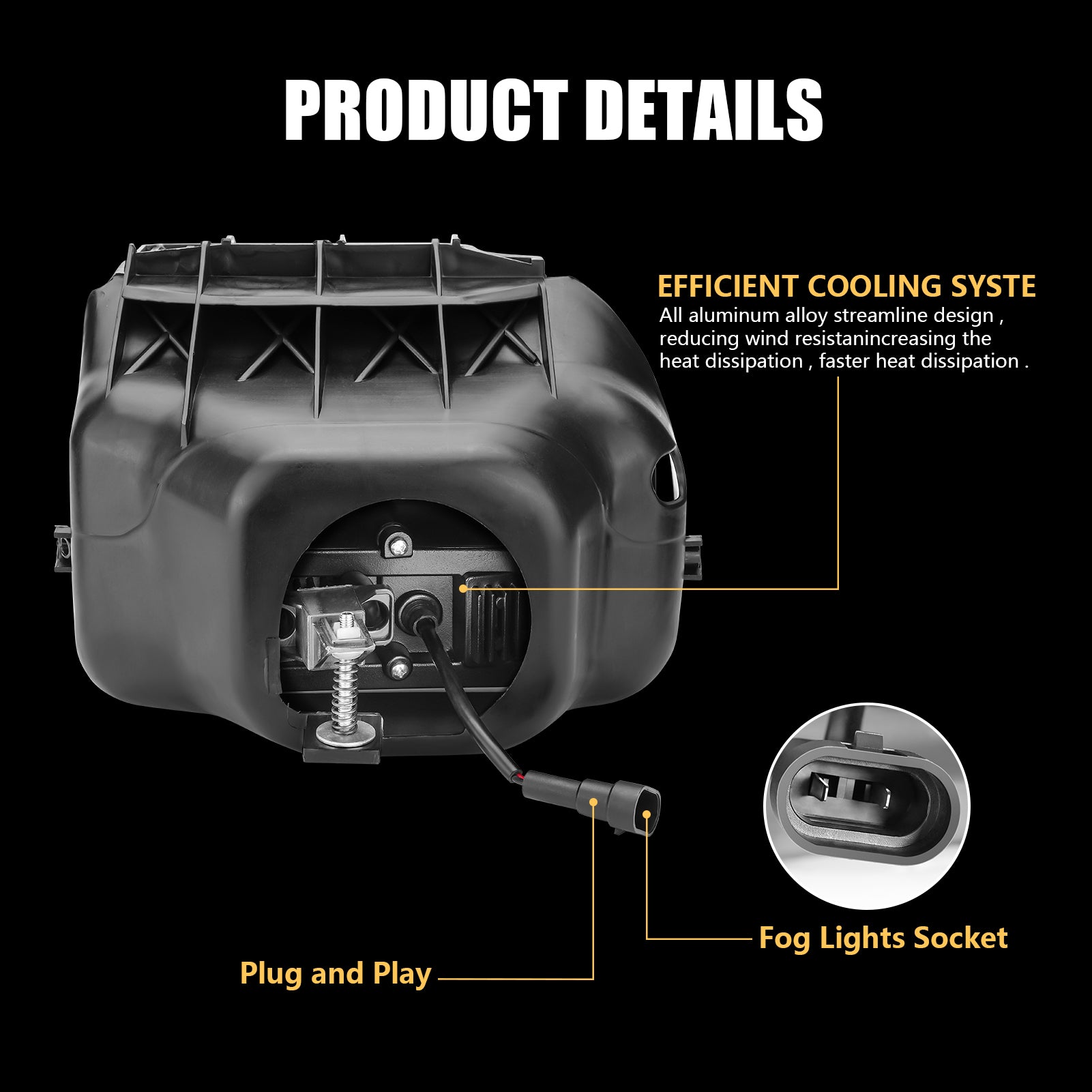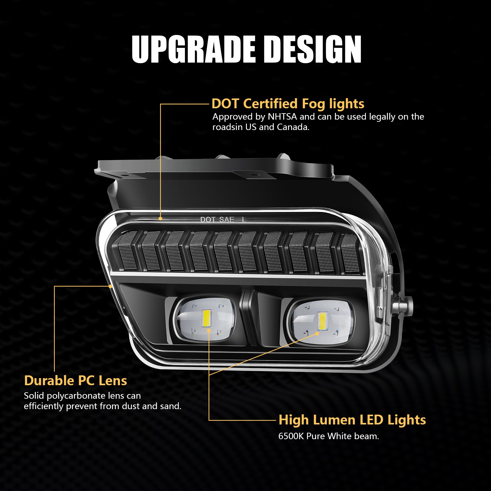 - Superior Brightness & Clarity:Our LED fog lights are equipped with high-performance LED chips, delivering an ultra-bright beam that ensures maximum visibility in low-light and foggy conditions. The advanced optical design minimizes light scatter, providing a sharp, focused light output to enhance your driving safety even in harsh weather