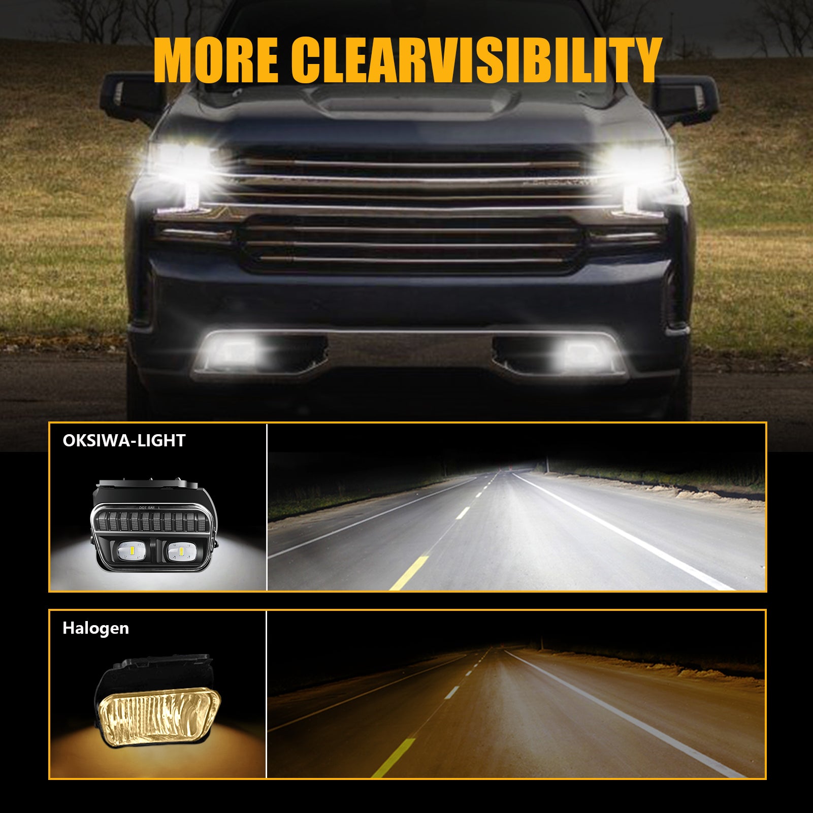 OKSIWA LED Fog Lights for Chevy Silverado 2003-2006 All Models,Avalanche 2002-2006,Pickup Truck Driving Fog Lamps, Fog Light Replacement Clear Lens