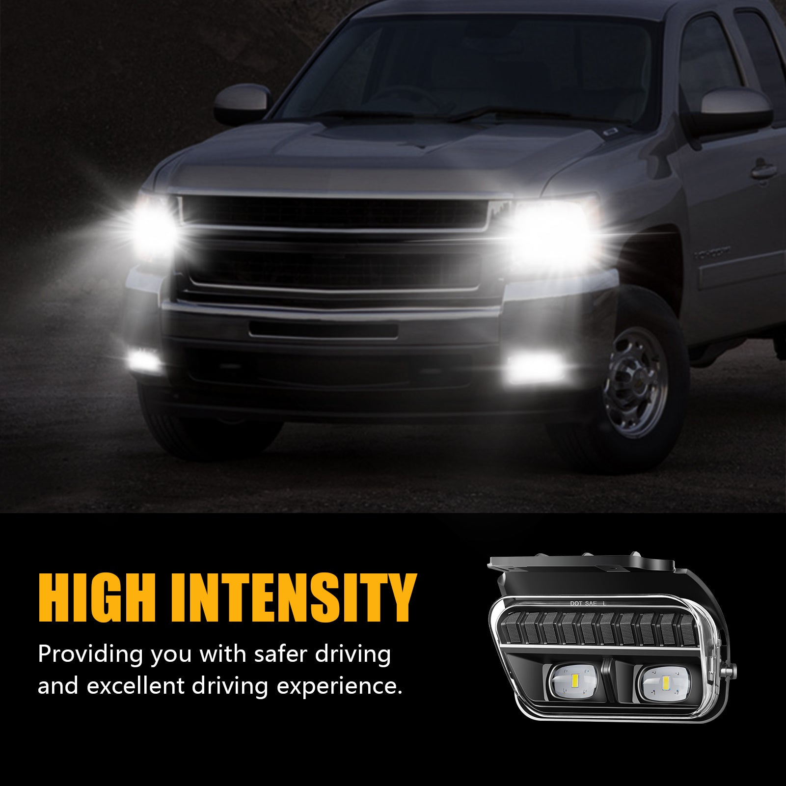 - Fitment and Feature:Fit for 2003-2006 Chevy Silverado All Modes,2002-2006 Avalanche.Please Confirm the Vehicle Fitment Before Ordering.The New Upgrade LED Fog Light Come with white Day Running Light and Amber Turn Signal, 3 In 1 Function