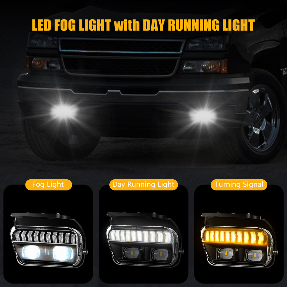 OKSIWA LED Fog Lights with Day Running Light for Chevy Silverado 2003-2006 All Models,Avalanche 2002-2006,White DRL, Amber Turn Signal, Pickup Truck Driving Fog Lamps, Clear Lens