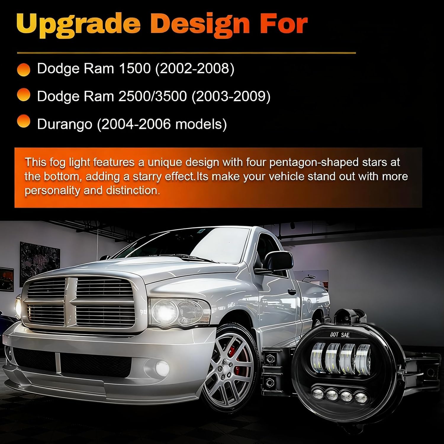 OKSIWA LED Fog Lights for 2002-2008 Dodge Ram 1500, 2003-2009 Ram 2500 3500, 2004-2006 Durango Pickup, Led Fog Lamp Upgrade and Modified - 4 Oval