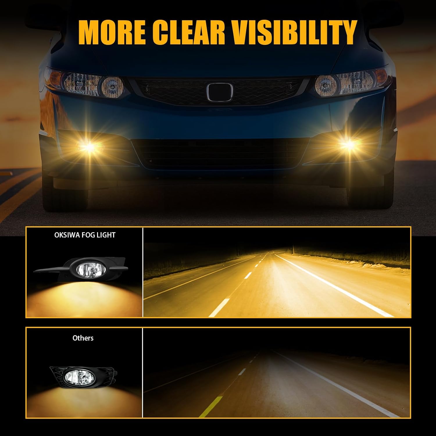 OKSIWA Halogen Fog Lights for 2009 2010 2011 Honda Civic Coupe,Front Bumper Driving Light Kit,Fog Lamps Assembly Replacement With Switch, Wiring Harness, Plug and Play