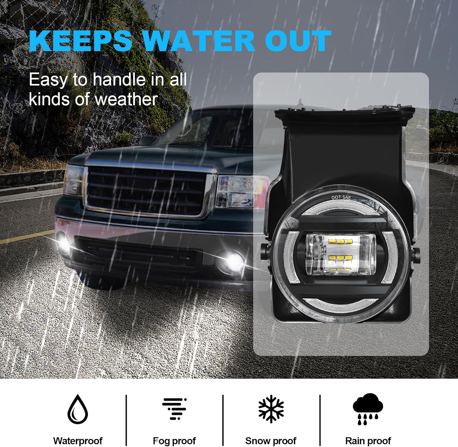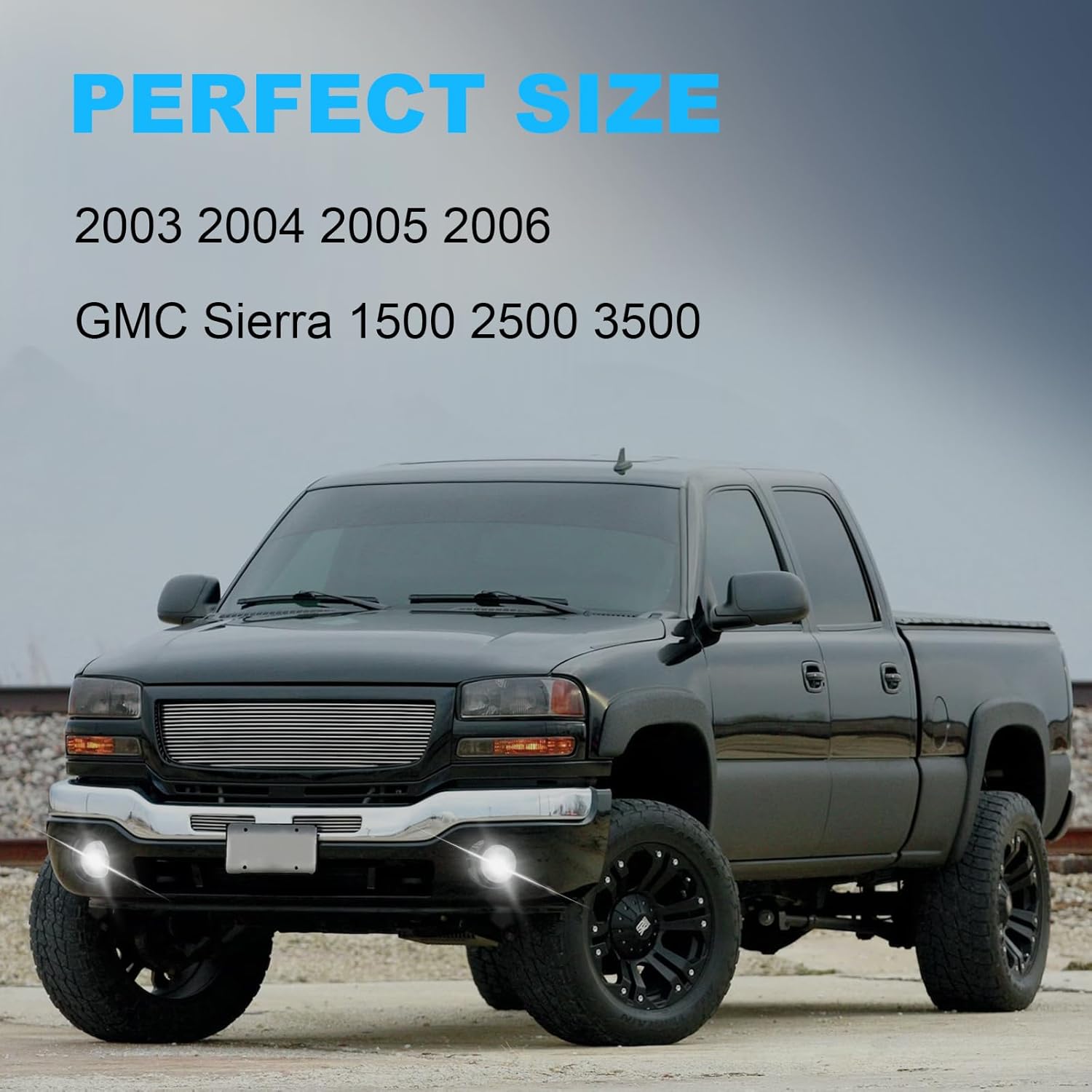 - Perfect Vehicle Match: Specifically designed for 2003-2006 GMC Sierra 1500, 2500, and 3500 models, our LED fog lights are a precise 1:1 replacement for factory-installed halogen lights. The integrated height adjuster ensures a perfect fit and easy installation