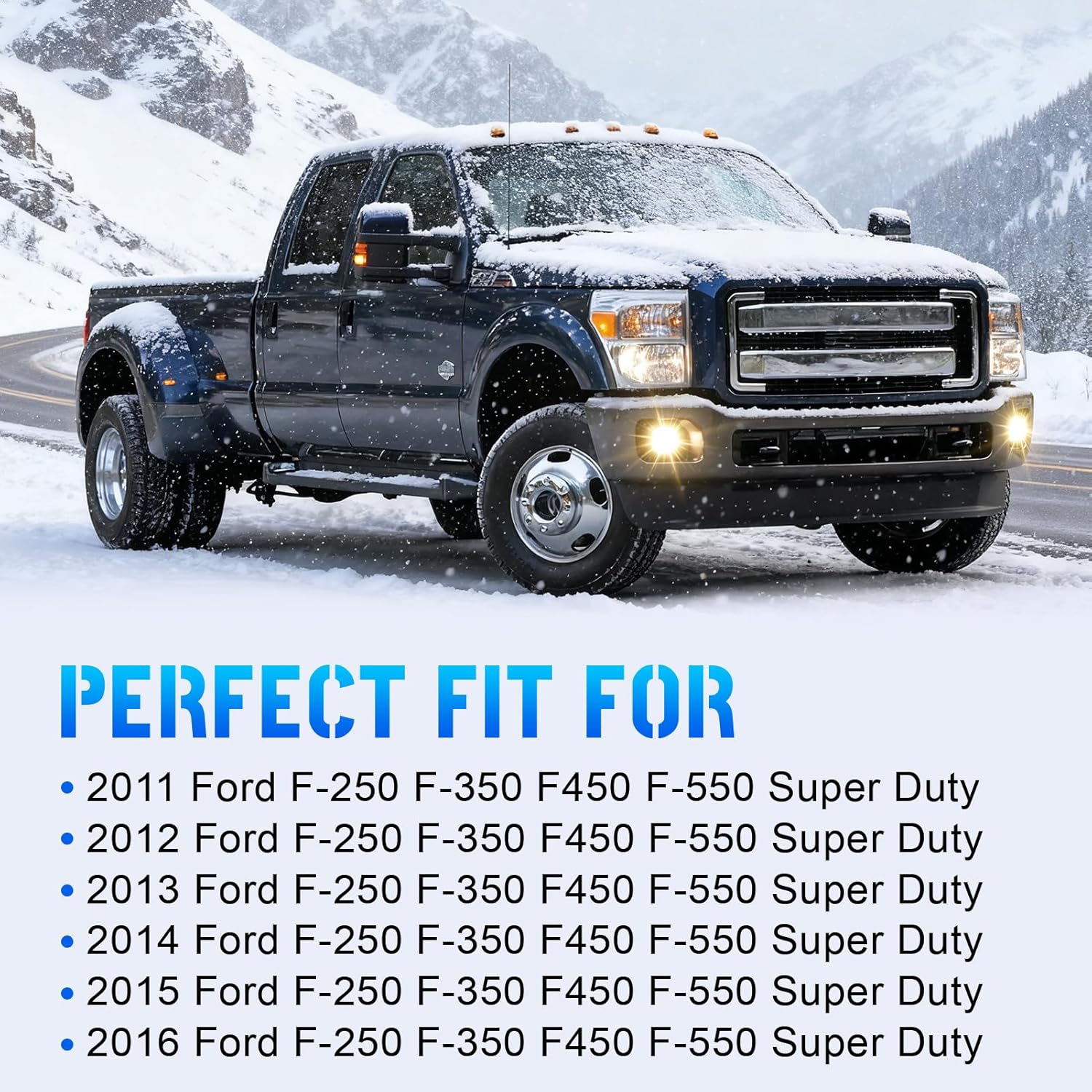- Perfect OEM Assembly: Specifically designed for Ford Super Duty models (2011-2016), including F250, F350, F450, and F550, these fog lights provide a precise 1:1 replacement for factory halogen units. An integrated height adjuster ensures a seamless fit and easy installation right out of the box