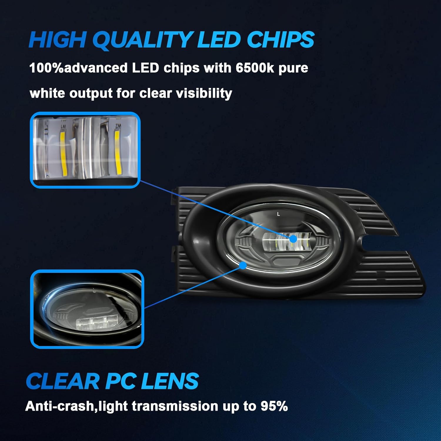 - Newest LED-Chip Design: Featuring the latest LED chip technology, our fog lights provide ultra-bright illumination with a luminous flux of 2500LM, a color temperature of 6500K, and a design lifespan of up to 55,000 hours