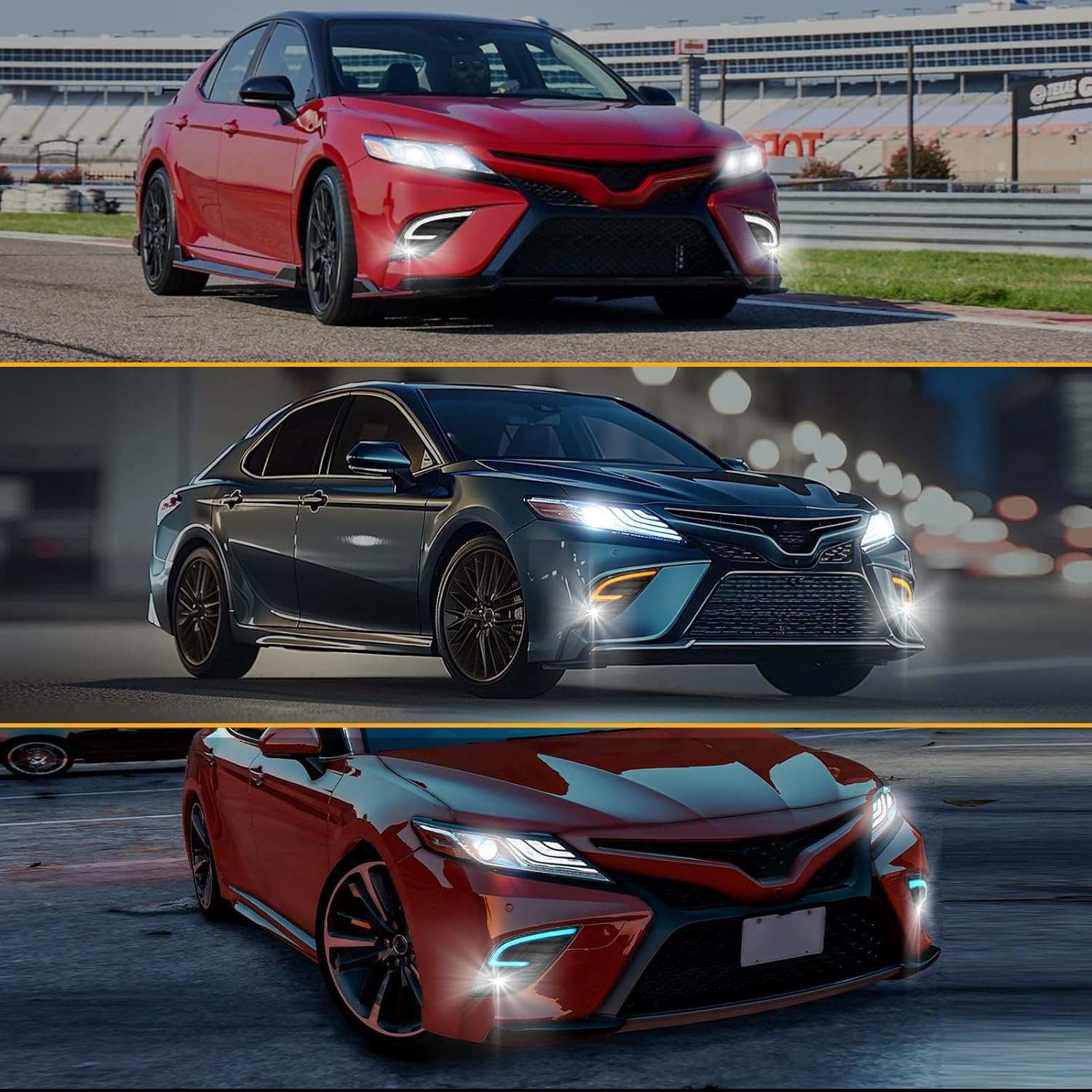 - Vehicle Fitment: Fit for 2018-2020 Toyota Camry SE XSE and 2018-2021 TRD models ONLY,Please Confirm the Vehicle Fitment Before Ordering.(Not for LE or XLE Trims Due to Front Bumper Differences)New Upgrade LED Fog Light Come with Day Running Light and Amber Turn Signal