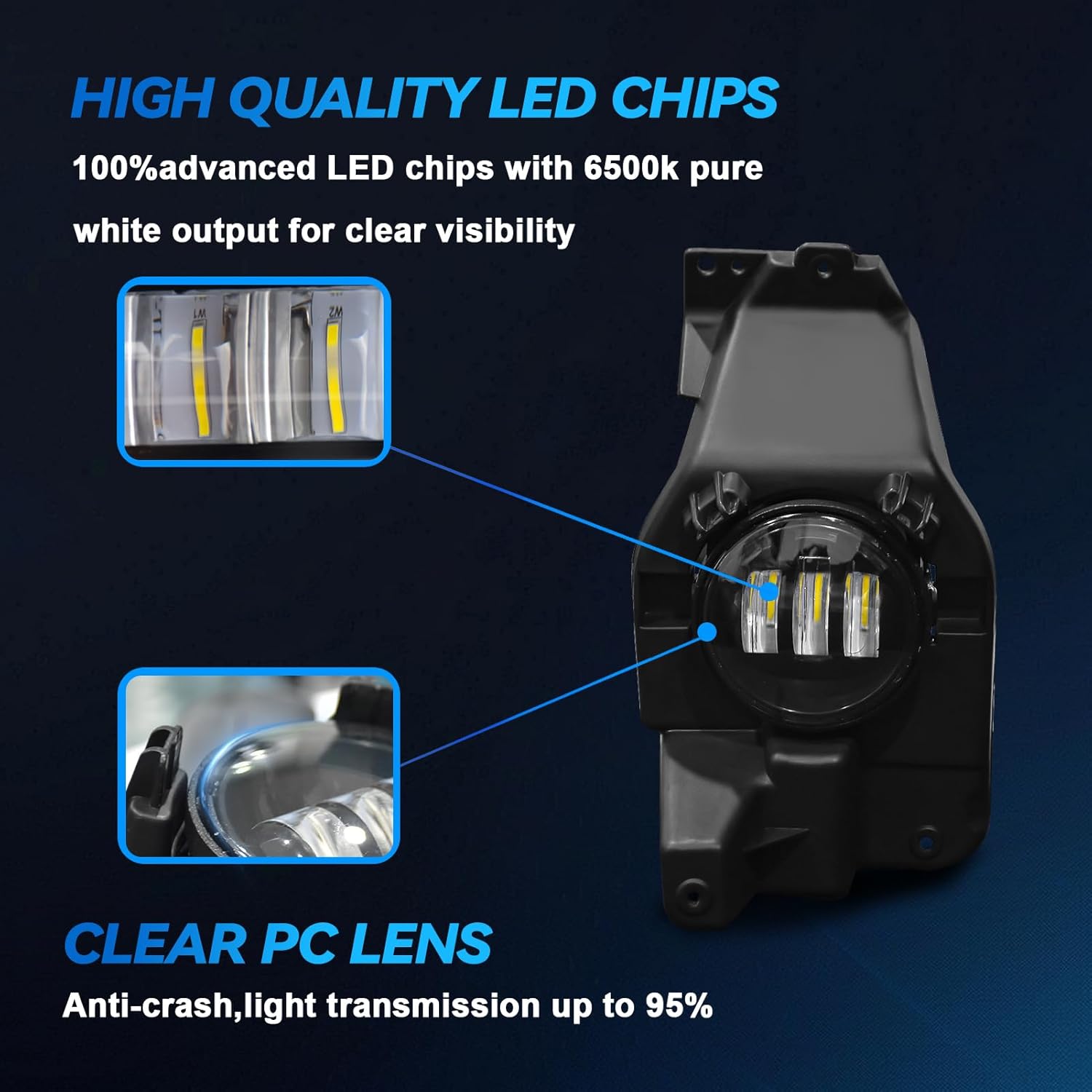 - Newest LED-Chip Design: Featuring the latest LED chip technology, our fog lights provide ultra-bright illumination with a luminous flux of 2500LM, a color temperature of 6500K, and a design lifespan of up to 55,000 hours