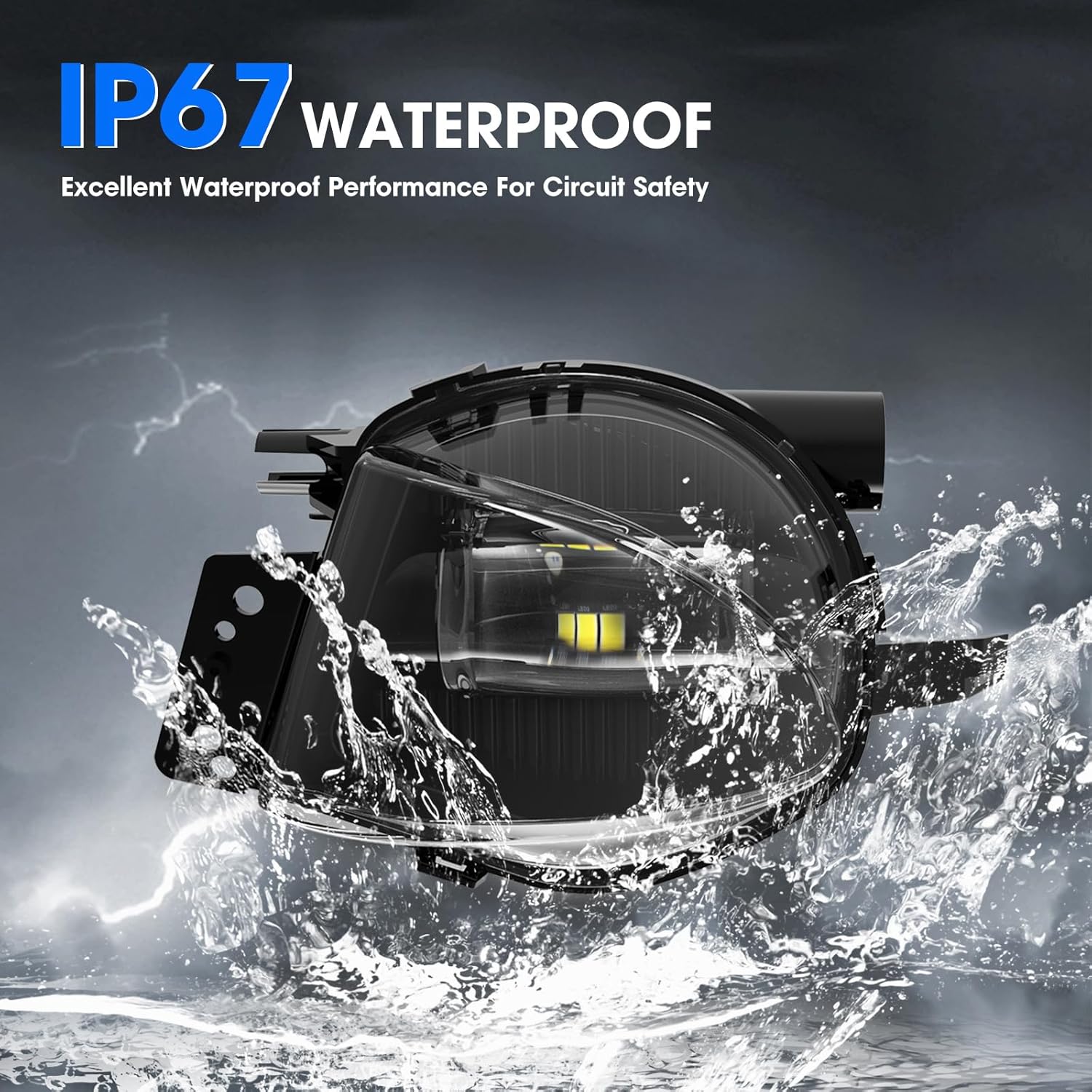 - IP67 Waterproof: Rated IP67 for waterproofing, these fog lights are fully protected against water and dust ingress. They are built to withstand harsh environments, ensuring reliable performance and longevity in all conditions