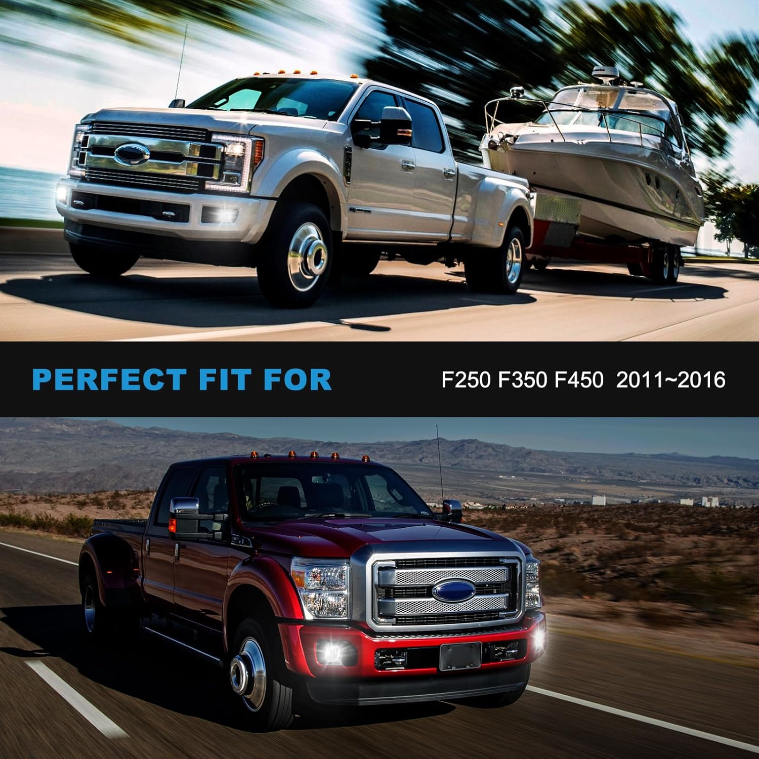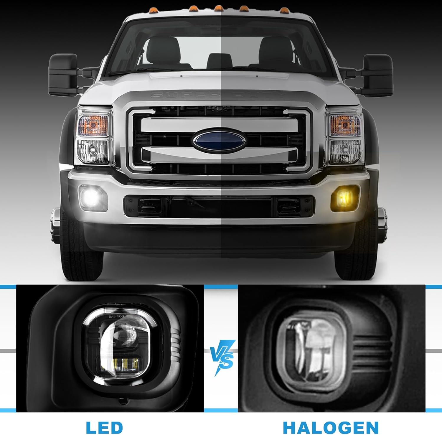 - Perfect OEM Assembly: Specifically designed for Ford Super Duty models (2011-2016), including F250, F350, F450, and F550, these LED fog lights provide a precise 1:1 replacement for factory halogen units. An integrated height adjuster ensures a seamless fit and easy installation right out of the box